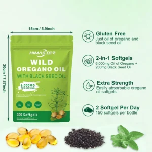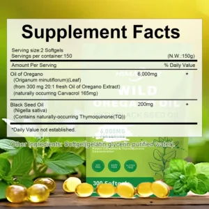 Oregano Oil Capsules Organic – Each serving of oil of oregano capsules contains oil of oregano with black seed oil. The main ingredients are a natural organic mixture of oil of oregano with black seed oil, including Carvacol and Thymoquinone,support digestive health and help maintain balance in the body contribute to overall wellness